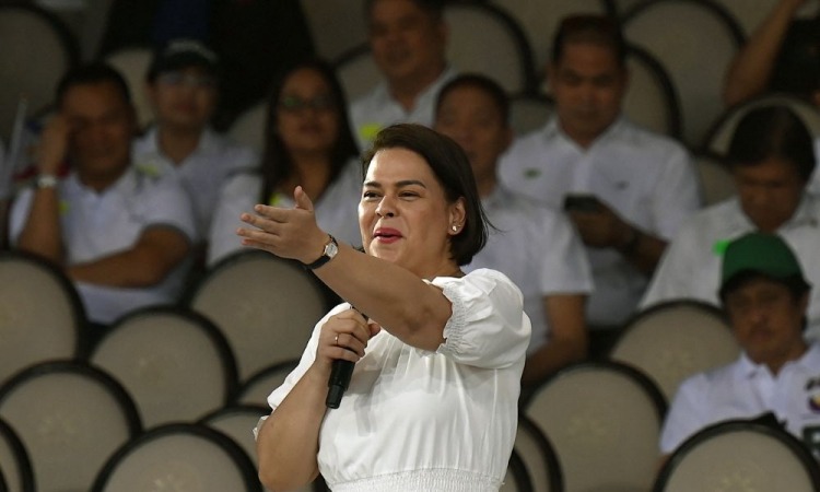 Vice-presidente das Filipinas, Sara Duterte, fala durante o comício inicial do movimento das Novas Filipinas na arquibancada Quirino em Manila