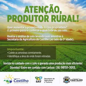Que tal receber ajuda profissional para saber se o solo da sua propriedade precisa de algum tipo de correção? Vá à Secretaria Municipal de Agricultura e saiba como ter acesso a esse serviço!