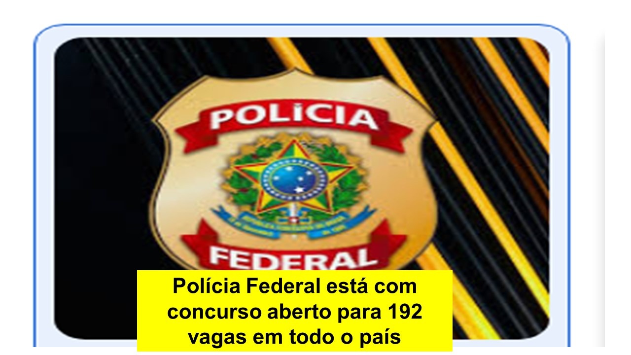 Seguem abertas até o dia 21 deste mês, as inscrições para o concurso da Polícia Federal com 192 vagas em todo o país. Também terá formação de cadastro reserva.
