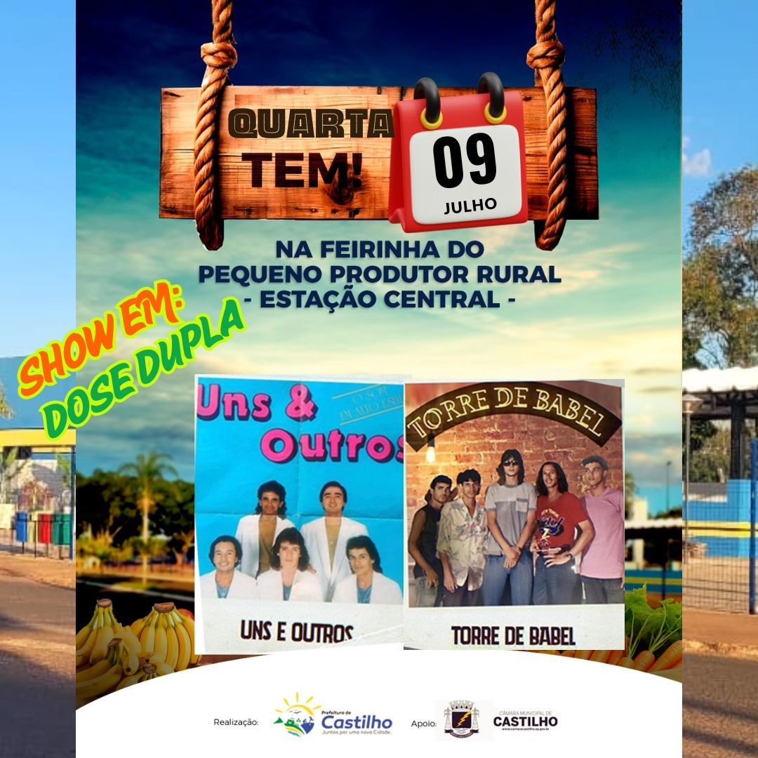 CASTILHO – A celebração do feriado da Revolução Constitucionalista no próximo dia 9 de julho, uma data importante para o estado de São Paulo, será com shows em Castilho. Durante a Feirinha do Produtor Rural, dois shows vão animar a cidade: as bandas Torre de Babel e Uns e Outros, que marcaram época nas décadas de 80 e 90, estarão dividindo o mesmo palco, montado em frente à estação ferroviária.