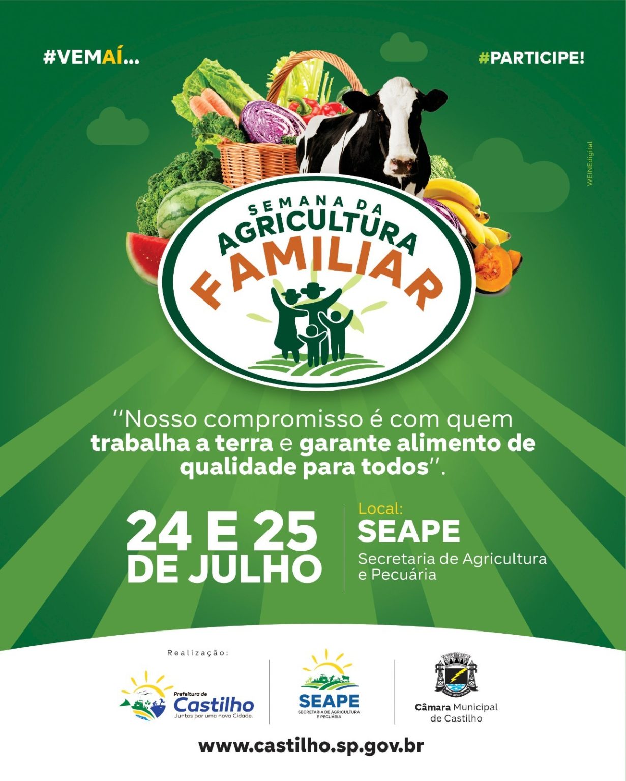 CASTILHO – A Secretaria Municipal de Agricultura e Pecuária (SEAPE) está nos preparativos finais para realização da Semana da Agricultura Familiar, um evento que promete ser de grande importância para os produtores rurais de Castilho e região.