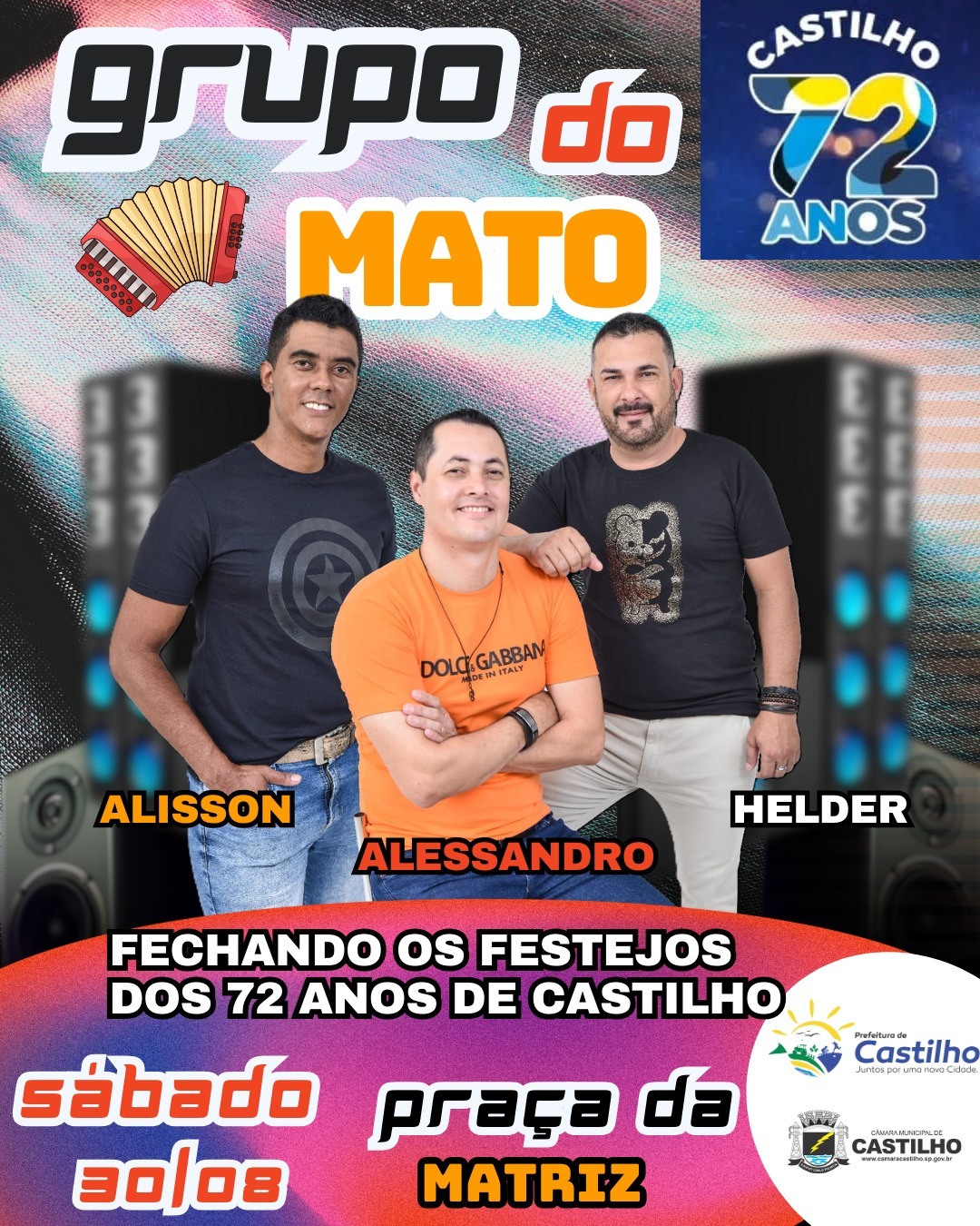Alô forrozeiros de Castilho, neste sábado dia 30 continuam as comemorações dos 72 anos da cidade. Venha bailar com GRUPO DO MATO. É sábado a partir das 8h da noite na Praça da Matriz. Haverá brinquedos infláveis para as crianças e distribuição de pipoca e algodão doce.