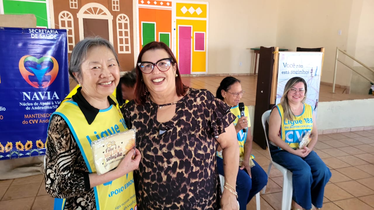 A palestra, que durou pouco mais de uma hora, contou com a presença de quatro voluntários do CVV: a ex-prefeita de Andradina, Tamiko, o ex-delegado dr. Casati, e as voluntárias Toninha e Paulinha.