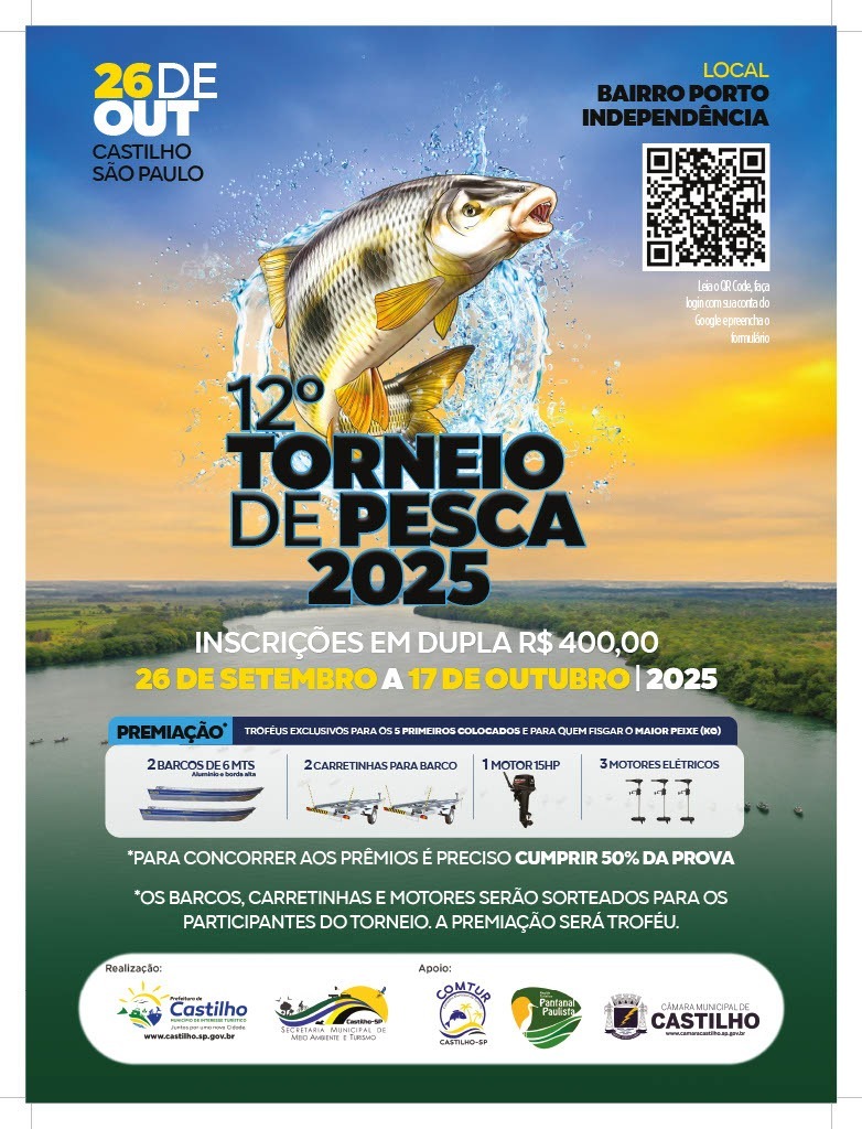 O torneio de pesca acontecerá no dia 26 de outubro, das 8h às 11h, tendo como cenário o rio Paraná, especificamente no “Bico da Ilha”, no bairro Porto Independência (Pontal). Esta será a primeira vez que o local receberá a competição. De acordo com o prefeito, a proposta é valorizar todos os pontos turísticos de Castilho. Vários outros torneios já haviam sido realizados no bairro Beira Rio e até mesmo no iate Urubupungá.
