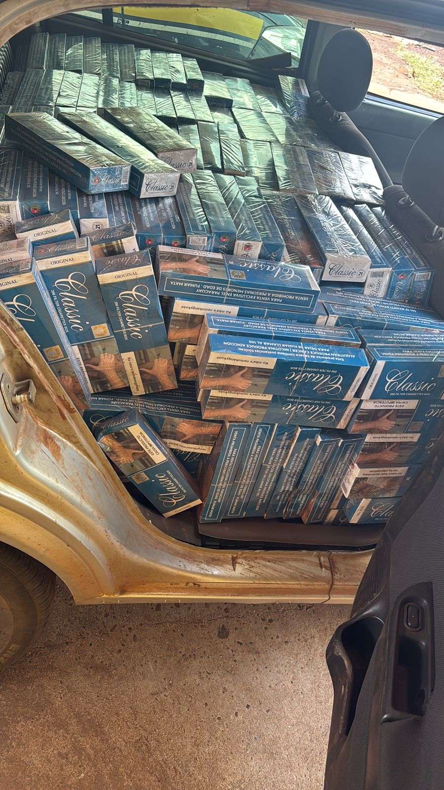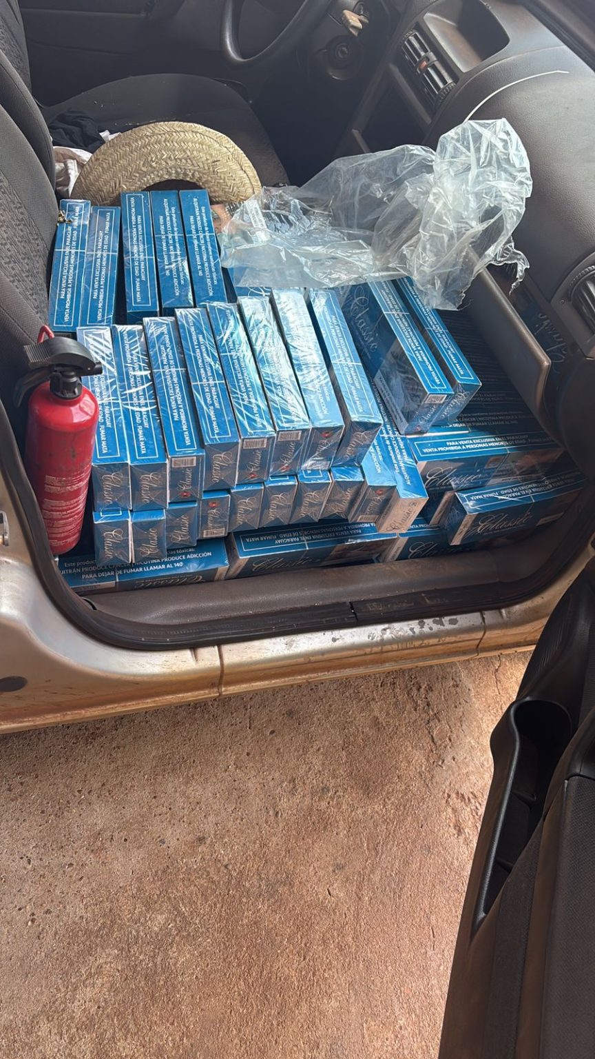 No automóvel foram encontrados 140 quilos de agrotóxicos e 20.000 maços de cigarros. O carro e as mercadorias foram encaminhadas à Receita Federal.