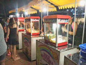 Distribuição Gratuita: Houve distribuição de pipoca e algodão-doce, além de brinquedos infláveis para as crianças.