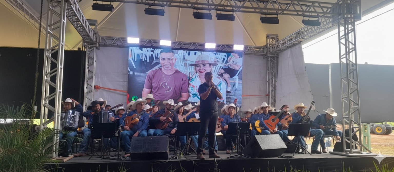 Pela segunda vez neste ano de 2025, a Orquestra de Violeiros de Castilho foi convidada pela Eldorado Brasil para se apresentar – desta vez em um grandioso evento de final do ano que reuniu mais de 5 mil pessoas no estacionamento do Shopping Três Lagoas (MS).