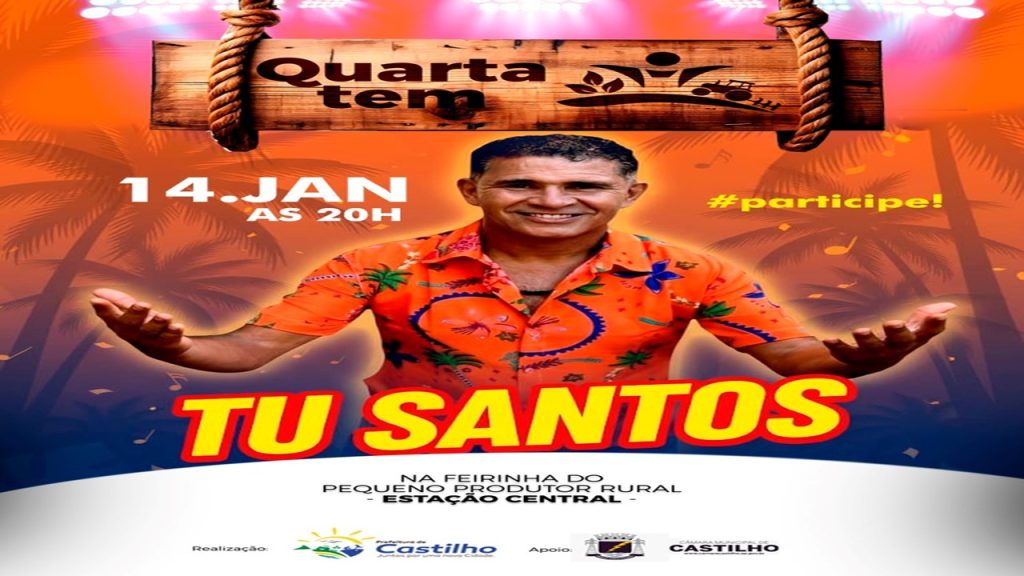 Nesta quarta ferira na Feirinha do Produtor de Castilho tem som ao vivo com Tu Santos, inicio as 20 hs.