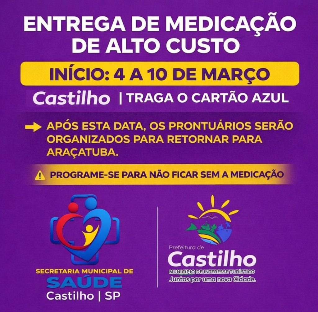A Secretaria de Saude esta entregando os medicamentos de alto custu aprtir de hoje dia(04)e vai até o dia (10) deste mês de março. Veja o que esta escrito no Post para ter maiores informações.