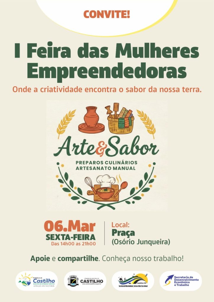 CASTILHO – A criatividade e o talento feminino estarão em destaque nesta sexta-feira, dia 6 de março, durante a realização da I Feira das Mulheres Empreendedoras – Arte & Sabor, em Castilho. O grupo tem o apoio da câmara de vereadores e da prefeitura – por meio da secretaria de Desenvolvimento Econômico e Trabalho, bem […]
