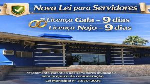 CASTILHO — O prefeito Paulo Duarte Boaventura sancionou a Lei Municipal nº 3.570, de 03 de março de 2026, que assegura aos servidores públicos municipais o direito à ampliação dos períodos de afastamento em casos de casamento e falecimento de familiares próximos.