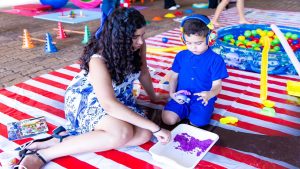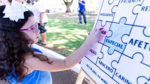 Como parte das atividades, uma tenda especial foi montada na praça por meio de uma parceria entre a Secretaria de Saúde e a clínica Autimmais, oferecendo experiências sensoriais para acolhimento das crianças e participantes, proporcionando um ambiente inclusivo e adaptado.