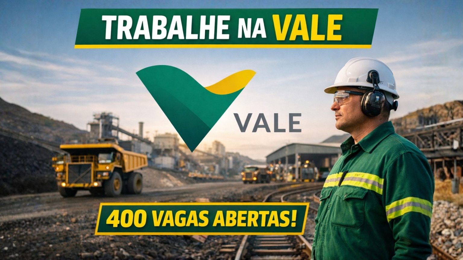 Vale abre 400 vagas em 6 estados para níveis médio, técnico e superior, com salários de até R$ 10 mil e inscrições online.