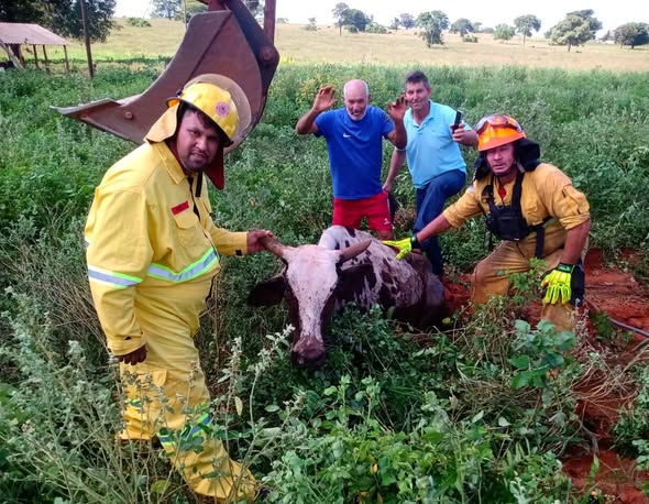 Após 11 horas de agonia, vaca que caiu em buraco é localizada e resgatada pela Brigada de Castilho (SP)