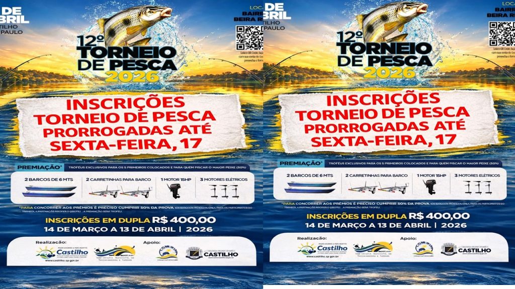 CASTILHO – A Comissão Organizadora do 12º Torneio de Pesca de Castilho anunciou a prorrogação das inscrições, garantindo mais uma oportunidade para os amantes da pesca esportiva participarem do evento. Agora, os interessados têm até a próxima sexta-feira, dia 17 — véspera do torneio — para garantir presença. O valor permanece o mesmo: R$ 400,00 […]