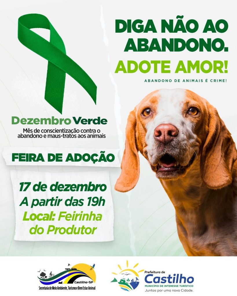 CASTILHO – Na quarta-feira da semana que vem, dia 17, a Secretaria Municipal de Meio Ambiente, Turismo e Bem Estar Animal realizará uma ação de adoção de animais na Feirinha do Produtor. A iniciativa faz parte do Dezembro Verde, campanha de conscientização contra o abandono de animais e maus-tratos. Com o lema “Diga não ao […]