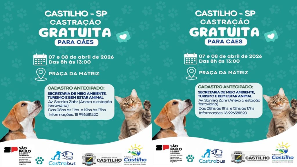 CASTILHO – A Secretaria Municipal de Meio Ambiente, Turismo e Bem Estar Animal receberá, nos dias 07 e 08 de abril, o mutirão de castração e microchipagem gratuita para cães. Esta ação será realizada em parceria com o Governo do Estado de São Paulo, por meio do programa ProPet SP e conta com apoio da […]